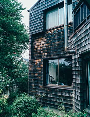 外壁:レッドシダーシングルサイディング(鱗貼り)